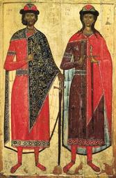 | Keywords: Святые Борис и Глеб.jpg СВЯТЫЕ БОРИС И ГЛЕБ Се едина XIV в осква Из коллекции П Лихачева ДРЖ-2117 Русский узей SS BORIS AND GLEB An early 14th-century icon from Mstera Passed to the Russian Museum from the en Nikolay Likhachyov Collection Russian Museum http //lj rossia org/users/john_petrov/319611 html XIV author PD-old Icons of Boris and Gleb Icons of Moscow 14th-century icons in the Russian museum Nikolay Petrovich Likhachev | ||||