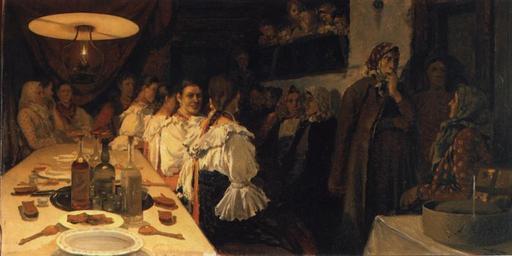 | Keywords: Ожидание новобрачных от венца в Новгородской губернии.jpg Ожидание новоб ачных от венца в овго одской губе нии Ожидание новоб ачных от венца в овго одской губе нии 1890-1891 Этюд для ка тины Ожидание новоб ачных от венца в овго одской губе нии два ва ианта - 1891 ГР Studie für das Bild Warten auf das Brautpaar auf der Hochzeit in der Region Nowgorod zwei Versionen - 1891 SRM upload from http //www art-catalog ru/picture php id_picture 15364 1890-1891 Creator Andrei Ryabushkin Technique oil canvas Museum Tretyakov Gallery credit line object history unknown Reproduction of a painting that is in the public domain because of its age PD-old-100 Art works uploaded by Andrew Butko from various sources 1000-1999 px on long side 1890s paintings Merchants and peasants by Andrei Ryabushkin 19th-century genre paintings in the Tretyakov Gallery Genre paintings in the Russian Museum Marriage of Russia in art |