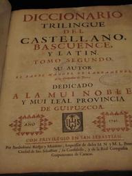 Keywords: IMG 2358.JPG es Diccionario trilingüe del castellano bascuence y latín de Manuel de Larramendi 1745 own Simoncio Cc-zero Basque culture