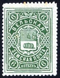 | Keywords: Вельский уезд.jpg Земская ма ка Вельский уезд uploaded from http //webhost kemtel ru/~nbl/zemstvo/content html < 1917 Author Reproduction of a painting that is in the public domain because of its age PD-Art Stamps of Russia unidentified year Coats of arms of Russia on stamps Stamps uploaded by Andrew Butko from various sources Zemstvo stamps of Vologda Governorate Stamps of Russia unidentified year Stamps of Russia to be categorised by subject | ||||