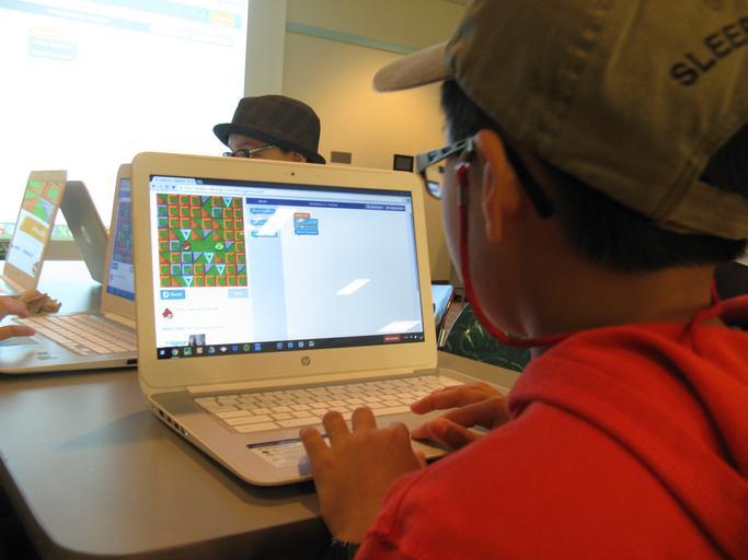 Keywords: kalamazoo kalamazoo public library kalamazoopubliclibrary code indoor KPL Code Camp: Teens work together to solve problems while learning basic computer programming skills, www.kpl.gov KPL Code Camp: Teens work together to solve problems while learning basic computer programming skills, www.kpl.gov