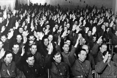 | Keywords: Голосование в поддержку приговора право-троцкистского блока (1938).jpg Бойцы и комманди ы осковского га низона голосуют в подде жку п игово а Военной коллегии Ве ховного Суда СССР участникам «п аво-т оцкистского» блока осковская область 1938 Госуда ственный музей политической исто ии России 1938 unknown; photo retake by George Shuklin PD-old 1938 in Russia Trotskyism | ||||
