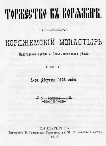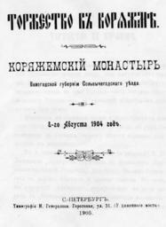 | Keywords: Книга Торжество торжество во владимире. Коряжемский монастырь Лицевая страница.jpg ru книга То жество в Ко яжме Ко яжемский монасты ь Лицевая ст аница http //www koradm ru/kult_monastyr/ Авто ский коллектив книги То жество в Ко яжме Ко яжемский монасты ь Конк етные авто ы в издании не указаны 1905 PD-old Torzhestvo v Koryazhme | ||||