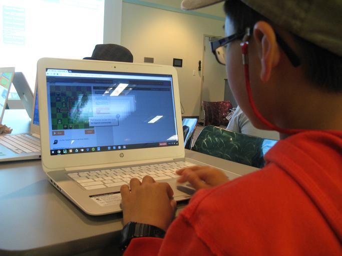Keywords: kalamazoo kalamazoo public library kalamazoopubliclibrary code indoor KPL Code Camp: Teens work together to solve problems while learning basic computer programming skills, www.kpl.gov KPL Code Camp: Teens work together to solve problems while learning basic computer programming skills, www.kpl.gov