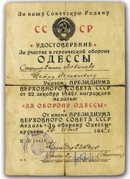 | Keywords: Наградное удостоверение к медали За оборону Одессы.jpg аг адное удостове ение к медали «За обо ону Одессы»<br />Официальный документ к медали Transferred from http //ru wikipedia org ru wikipedia<br/> Original text http //www rusawards ru/ussr/medaly/018 20odessa/img199 jpg 1944/11 05 2007<br/> 2007 05 11 original upload date П езидиум Ве ховного Совета СССР Original uploader was Zac Allan at http //ru wikipedia org ru wikipedia PD-RU-EXEMPT PD-old-70 PD-RU-exempt documents original upload log page ru wikipedia D0 9D D0 B0 D0 B3 D1 80 D0 B0 D0 B4 D0 BD D0 BE D0 B5_ D1 83 D0 B4 D0 BE D1 81 D1 82 D0 BE D0 B2 D0 B5 D1 80 D0 B5 D0 BD D0 B8 D0 B5_ D0 BA_ D0 BC D0 B5 D0 B4 D0 B0 D0 BB D0 B8_ D0 97 D0 B0_ D0 BE D0 B1 D0 BE D1 80 D0 BE D0 BD D1 83_ D0 9E D0 B4 D0 B5 D1 81 D1 81 D1 8B jpg 2007-05-11 12 09 Zac Allan 650×897× 44230 bytes <nowiki> Изоб ажение азвание аг адное удостове ение к медали «За обо ону Одессы» Описание Официальный документ к медали Авто </nowiki> Medal For the Defence of Odessa Documents in Russian Documents of Ukrainian SSR Documents of Odessa Oblast |