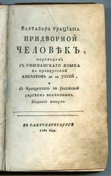 | Keywords: Грасиан Волчков.jpg en Cover of the book of B Grasian translated by S S Volchkov ru Обложка книги Б Г ациана пе еведенной С С Волчковым Г асиан Б П идво ный человек Санкт-Пете бу г 1760 Г асиан Б Волчков С С 1760 PD-old-100 1760 books 18th-century books Books from Russia 1760 |