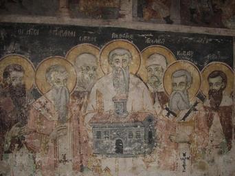 | Keywords: Македонски седмочисленици.jpg sk Svätí Sedempočetníci tiež Sedmopočetníci Sedmočislenici Siedmi svätí je súhrnné označenie pre sv Cyrila a Metoda a ich najvýznamnejších žiakov svätých Gorazda Klimenta Ochridského Nauma Ochridského Sávu a Angelára Poslední štyria menovaní pochádzali kmeňov južných Slovanov viacerí bulharskí historici však tvrdia že nielen Gorazd ale aj Kliment pochádzal z Veľkej Moravy <br /> Zľava Naum Kliment Sáva Metod Angelár Cyril Gorazd bg Свети Седмочисленици е съби ателно название за св Ки ил и св етодий и техните по-значими ученици за св Го азд св Климент Ох идски св аум Ох идски св Сава и св Ангела ий Последните чети има са с южнославянски п оизход но много бълга ски исто ици казват че не само Го азд но и Климент са дошли от Великомо авия <br /> От ляво на дясно аум Климент Сава етодий Ангела ий Ки ил Го азд http //www odysseus bg/coppermine/albums/userpics/10098/S5000030 jpg author Saint Naum Monastery Frescos of Saint Naum Frescos of Clement of Ohrid Frescos of Saints Cyril and Methodius Frescos in the Republic of Macedonia PD-art |