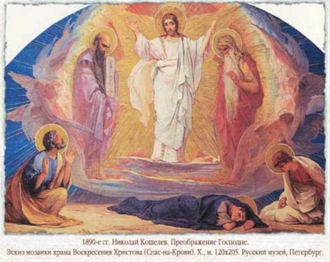 | Keywords: Преображение Господне.jpg Artwork creator Nikolai Andreevich Koshelev Спаса на К ови - 1890 1900 Oil canvas cm 120 205 institution Russian Museum object history unknown credit line ~ lower left signature accession number http //www krotov info/spravki/history_bio/19_bio/1840kosh html Библиотека Якова К отова PD-old-auto 1918 1890s paintings Nikolai Andreevich Koshelev Interiors of the Church of the Saviour on the Blood Paintings of the transfiguration of Jesus Christ Religious paintings in the Russian Museum |