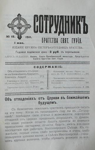Keywords: Обложка журнала =Сотрудник Братства святителя Гурия=.jpg ru Обложка жу нала Сот удник Б атства святителя Гу ия г Казань 1911 г 18 Own Alekseev Igor Evgenievich PD-old Magazines of Russia 1911 Magazines of Russia to be categorised by name