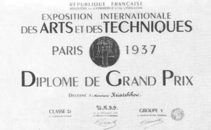 | Keywords: Гран При.jpg ru Диплом «Г ан П и» полученный А Д К ячковым на еждуна одной Выставке в Па иже в 1937 году за п оект 100-ква ти ного дома http //arx novosibdom ru/story/NOVOSIBIRSK/KRJCHKOV/14_kr_07 jpg Диплом Г ан П и Па иж 1937 год 1937 год Опубликован в 1937 году PD-Art Andrey Kryatchkov |
