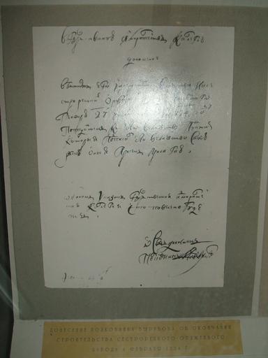 Keywords: Вырубов о завершении строит. СИЗ.JPG ru Донесение поковника Вы убова о заве шении ст оительства Сест о ецкого о ужейного завода Фонды музея Санато ия Сест о ецкий ку о т уме более 70 лет назад 1724 Sestroretsk Instrumental Factory House of Vyrubov PD-old-100 |