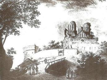 Keywords: Острозький замок.JPG uk Залишки замку в Ост озі а хів uk П Расле Creator P Rassler 1799 PD-old-100 Epiphany Church in Ostroh 16th century Ostroh castle Historical images of Ostroh