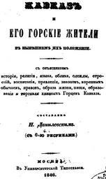 | Keywords: Кавказъ е его горскіе жители въ нынйшнемъ ихъ положеніи. P.1.jpg ru Обложка книги Кавказъ е его го скіе жители въ нынйшнемъ ихъ положеніи Book cover of Caucasus and it's mountain inhabits in their modern condition წიგ კავკასია და მთის ხალხები თა ამედრ ვე მდგ მარე ბაში ყდა http //books google com/books id xRMIAAAAQAAJ pg PA1 Кавказъ е его го скіе жители въ нынйшнемъ ихъ положеніи by Nikolay Danilevsky 1846 Nikolay Danilevsky 1822 1885 PD-old-100 Кавказъ е его го скіе жители въ нынйшнемъ ихъ положеніи Scans from Google Books |