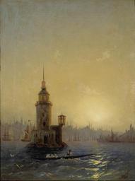 | Keywords: Айвазовский (Гайвазовский) Иван (Оганес) Константинович Вид Леандровой башни в Константинополе.jpg ru К упнейший ма инист в усской живописи XIX века И К Айвазовский много путешествовал и часто включал в свои мо ские пейзажи изоб ажения известных а хитекту ных соо ужений Запечатленная на ка тине Леанд ова Девичья башня была пост оена в XII веке на небольшой скале у входа в п олив Стамбульской гавани и издавна служила маяком и местом шва товки ко аблей В качестве маяка она используется и поныне Башня возвышается на фоне золотистого неба лучи заходящего солнца ок ашивают пове хность мо ской воды в пе ламут овые тона а вдали п оступают силуэты пост оек д евнего го ода ягкий солнечный свет омантизи ует созданный художником пейзаж en The Maiden's Tower also known in the ancient Greek and medieval Byzantine periods as Leander's Tower Tower of Leandros sits on a small islet located at the southern entrance of the Bosphorus strait off the coast of sküdar in Istanbul Turkey painting institution Tretyakov Gallery http //www tretyakovgallery ru/ru/collection/_show/image/_id/2295 Госуда ственная Т етьяковская Гале ея creator Ivan Aivazovsky 1848 <gallery>File View of the Leander Tower in Constantinople 1848 jpg</gallery> PD-old-100 Views of Constantinople by Ivan Aivazovsky Seacoasts by Ivan Aivazovsky 1848 paintings from Russia 19th-century landscape paintings in the Tretyakov Gallery Maiden's Tower 1840s landscape paintings Paintings of Ivan Aivazovsky in 1840s |