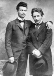 | Keywords: Чюрлянис с другом.jpg Чю лянис с д угом Эугениушем о авским-Домб ова <s>Собственный</s> скан из книги Ядвига Чю лёните Воспоминания о К Чю лёнисе Вильнюс Изд-во «Вага» 1975 from http //ciurlionis eu/wp-content/uploads/2010/09/p149MKC-ir-EMor png before 1912 author PD-old Images of user Vitold Muratov - Peoples Mikalojus Konstantinas Čiurlionis |