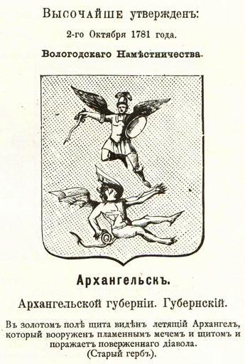 | Keywords: Архангельск из Винклера.jpg Official Russian Empire coat of arms Arkhangelsk Гласный ге б губе нского го ода Российской Импе ии А хангельск с официальным описанием в Ге бовнике Винкле а П П фон-Винкле Ге бы го одов губе ний областей и посадов Российской Импе ии внесенные в Полное Соб ание законов с 1649 по 1900 год Дозволено цензу ою С -Пете бу г 20 Июля 1899 года Издание книгото говца Ив Ив Иванова С -Пете бу г Типог афия И Комелова П яжка д 3 1899 \ Scanned by Vizu 1853 / 1899 published П П фон Винкле \ Pavel von Vinkler PD-old PD-RusEmpire PD-RU-exempt coats of arms Gerbovnik Vinklera - City CoAs Coats of arms of Vologda Governorate Coats of arms of Arkhangelsk Governorate Coats of arms of Arkhangelsk Saint Michael in heraldry Swords in heraldry Russian canting arms |