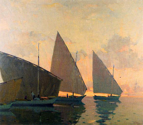 Keywords: В Геническе.jpg CC-BY-SA-2 0 амчич С Г В Геническе 1961 х м PD-Art Henichesk Paintings of boats Stepan Mamchich