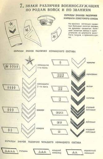 | Keywords: Руководство бойца пехоты знаки различия 1.jpg ru З АКИ РАЗЛИЧИЯ ВОЕ ОСЛУЖАЩИХ ПО РОДА ВОЙСК И ПО ЗВА ИЯ Из Руководства для бойца пехоты http //www rkka msk ru/rbp/rbp1 shtml УПРАВЛЕ ИЕ БОЕВОЙ ПОДГОТОВКИ КРАС ОЙ АР ИИ от 1935 до 1939 PD-old Red Army military rank insignia 1935 1940 00 |
