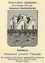| Keywords: Свияжск из Винклера.jpg Official Russian Empire coat of arm Ге б Российской Импе ии уездного го ода Свияжск Казанской губе нии с официальным описанием в Ге бовнике Винкле а П П фон-Винкле Ге бы го одов губе ний областей и посадов Российской Импе ии внесенные в Полное Соб ание законов с 1649 по 1900 год Дозволено цензу ою С -Пете бу г 20 Июля 1899 года Издание книгото говца Ив Ив Иванова С -Пете бу г Типог афия И Комелова П яжка д 3 1899 \ Scanned by Vizu 1781 \ 1899 published П П фон Винкле \ Pavel von Vinkler PD-old PD-RusEmpire PD-RU-exempt coats of arms Gerbovnik Vinklera - City CoAs Coats of arms of Kazan Governorate Volga in heraldry |
