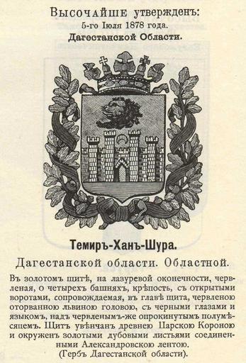 | Keywords: ТемирХанШура из Винклера.jpg Official Russian Empire coat of arm Ге б Российской Импе ии областного го ода Теми -Хан-Шу а Дагестанской области с официальным описанием в Ге бовнике Винкле а П П фон-Винкле Ге бы го одов губе ний областей и посадов Российской Импе ии внесенные в Полное Соб ание законов с 1649 по 1900 год Дозволено цензу ою С -Пете бу г 20 Июля 1899 года Издание книгото говца Ив Ив Иванова С -Пете бу г Типог афия И Комелова П яжка д 3 1899 \ Scanned by Vizu 1878 \ 1899 published П П фон Винкле \ Pavel von Vinkler PD-old PD-RusEmpire PD-RU-exempt coats of arms Gerbovnik Vinklera - City CoAs Coats of arms of Dagestan Oblast Buynaksk |