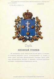 | Keywords: Херсонская губерния из Бенке.jpg Official Russian Empire coat of arms Kherson Governorate Ге б Российской Импе ии Хе сонской губе нии с официальным описанием в Ге бовнике Бенке Утве ждён Импе ато ом Все оссийским Александ ом Вто ым в 1878 году Ге бы губе ний и областей Российской Импе ии Отпечатано по аспо яжению минист а внут енних дел Санкт-Пете бу г Ка тог афическое заведение А А Ильина и типог афия инисте ства путей сообщения А Бенке 1880 / Scanned on paper album 1878 / 1880 published Russian Empire PD-old PD-RusEmpire PD-RU-exempt coats of arms <gallery> File Хе сонская губ ВД Бенке jpg File Хе сонская губе ния изд Сукачова JPG File Coat of Arms of Kherson Governorate png </gallery> <references/> Coats of arms of Kherson Governorate Crowns in heraldry Crosses in heraldry Gerbovnik Benke |
