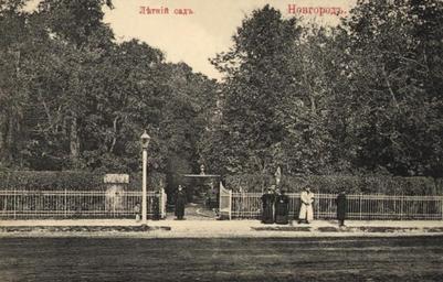 Keywords: Летний сад в Новгороде.jpg en The Summer Garden in Novgorod ru Летний сад в овго оде Отк ытка из коллекции А Козы ева Издание книжного магазина И И До е а before 1917 PD-old Old photo of Velikiy Novgorod