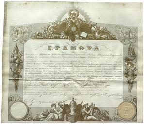 | Keywords: ГРАМОТА ДВОРЯНСКАЯ ИСПРАВЛЕННАЯ ДИЗАЙНЕРАМИ.jpg en Nobleman's sertificate of Boris Nik Behr ru Г амота на дво янское достоинство Бо иса Ивановича Бе ижего одское Дво янское Депутатское Соб ание ижего одское Дво янское Депутатское Соб ание 1843 PD-old Certificates Documents in Russian |