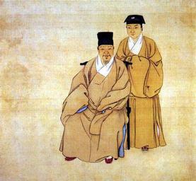 | Keywords: 夏允彝父子像.jpg en Xia Yunyi politician of the late Ming Dynasty zh 夏允 (1596年-1645年),字 仲,號瑗公, 江人(今上海市 江 人,明 政治人物,詩人,抗清不成 自殺 隆武 贈太子左春 左庶子,諡文忠 著 夏文忠公集 私制策 存錄 等等 子夏完淳亦為抗清烈士 清 徐璋 江邦彦像册·夏允 父子像 清 徐璋 Qing Dynasty PD-old-100 Jinshi People of the Ming Dynasty People of Shanghai |