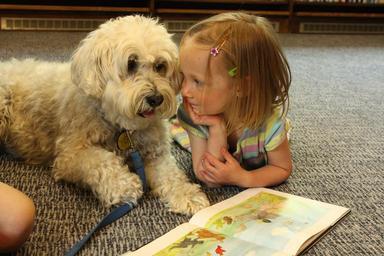 Keywords: Reading with Bailey at Kalamazoo Public Library. dogs public reading library international bailey kalamazoo therapy