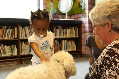 Keywords: Reading with Bailey at Kalamazoo Public Library. dogs public reading library international bailey kalamazoo therapy