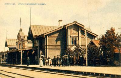 Keywords: Новгородский вокзал.jpg en Novgorod train station ru овго одский ж/д вокзал до 1941г Отк ытка из коллекции А Козы ева Издание книжного магазина before 1917 г PD-old Old photo of Velikiy Novgorod