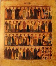 | Keywords: Минейная икона из церкви Димитрия Прилуцкого.JPG ru Икона из це кви Димит ия П илуцкого на аволоке в Вологде Рыбаков А А Вологодская икона Цент ы художественной культу ы земли Вологодской ХIII XVIII веков author XVI в PD-old Icons of Vologda Church of Dimitry Prilutsky na Navoloke Menaion calendar icons |