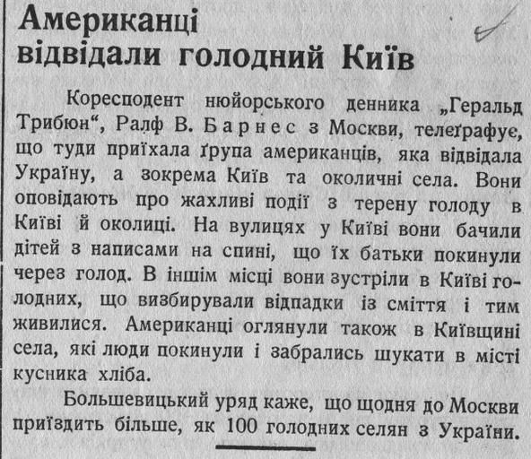 Keywords: Американці відвідали голодний Київ.jpg uk ате іали д укованої п еси науково-довідкової бібліотеки де жавного а хіву Че нівецької області які висвітлюють події Голодомо у на Ук аїні 1932 1933 оків Газета Час 4 жовтня 1932 1142 с 3 Author 1932 Holodomor 1932 newspapers PD-old Funds of state archive of Chernivtsi Oblast |