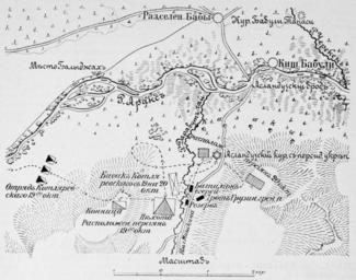 Keywords: Схема боя у Асландуза.jpg ru Схема боя у Асландуза 2011-12-03 Военная энциклопедия Том-III author PD-old-100 Battle of Aslanduz Military Map of the Russian Empire