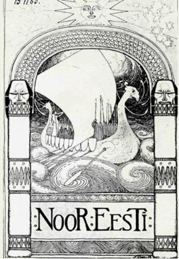 Keywords: Молодая Эстония.jpg ru Обложка книги 1906 года издания 1906 г Книга 1906 года Creator Nikolai Triik PD-old-100 Uploaded with UploadWizard Artist groups and collectives of Estonia Nikolai Triik Viking ships in art Books from Estonia