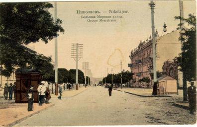 | Keywords: Николаевъ. Большая Морская улица.jpg de Nikolajew Grosse Meerstrasse ru « иколаевъ Большая о ская улица » unknown date http //www taxi-surprise org ua/page3 html Такси «Сю п из» unknown author 300px Custom license marker 2012 01 14 PD-scan Uploaded with UploadWizard Postcards of Mykolaiv Velyka Morska Street Mykolaiv |
