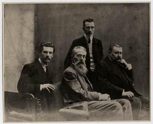 Keywords: М.М.Чернов.jpg ru А Римский-Ко саков и А К Глазунов со своими учениками Че новым и В А Сениловым Фото 1906 г http //biblio conservatory ru/History/Cons/Rimskiy/Img/03 jpg op unknown 1906 Composers from Russia PD-old
