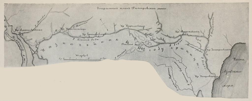 | Keywords: Днепровская линия.jpg Гене альный план Днеп овской линии по назначенной в 1742 году г анице Скан плана Днеп овской пог аничной линии п иложенного на отдельном листе к статье http //runivers ru/bookreader/book9613/ page/147/mode/1up Днеп овская пог аничная линия // Военная энциклопедия / Под ед В Ф овицкого и д Т 9 СПб т-во И В Сытина 1912 С 134 before 1912 author PD-RusEmpire PD-old Russian fortified lines | ||||