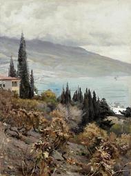 Keywords: Иосиф Евстафиевич Крачковский - Осень. На виноградниках Челтышеве.jpg Artwork Creator Iosif Krachkovsky Autumn At the vineyards of Zheltyshev 1900 oil canvas cm 42 5 32 object history credit line signed in Cyrillic and dated '1900' lower left ; inscribed on verso with title accession number http //www bonhams com/auctions/16883/lot/7/ Bonhams PD-old-auto 1914 Iosif Krachkovsky Crimea in art Vineyards in art 1900 paintings from Russia Images from Bonhams |