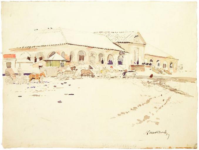 Keywords: Поштовий готель у Білій Церкві.jpg pl Zajazd w Białej Cerkwi na Ukrainie Ok 1876-1880 Ołówek i akwarela na papierze 22 5 x 33 cm Muzeum Narodowe w Krakowie http //www pinakoteka zascianek pl/Maslowski/Index htm Creator Stanisław Masłowski 1876 1880 Stanisław Masłowski Historical images of Bila Tserkva Hotels in Bila Tserkva PD-Art |