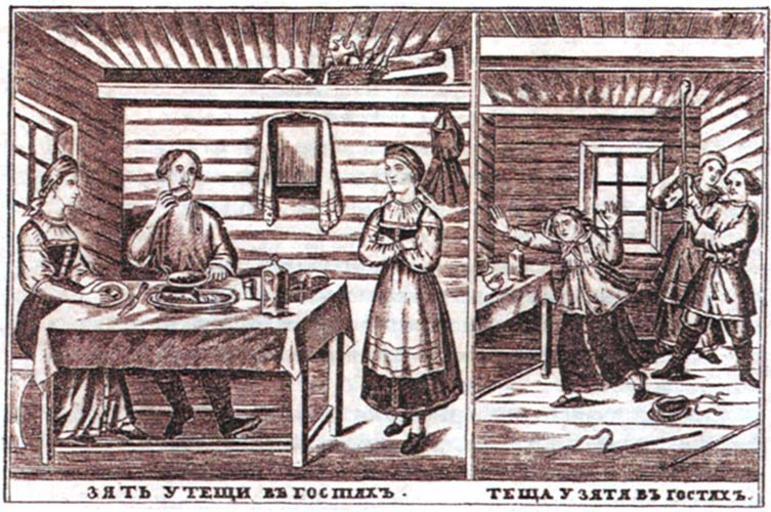Keywords: Лубок Зять-и-теща.jpg ru «Зять у тещи в гостях Теща у зятя в гостях» Лубок XIX в century 19 http //www booksite ru/fulltext/girls/rus/san/9 htm author PD-Art Uploaded with UploadWizard Lubok Maslenitsa in Russia