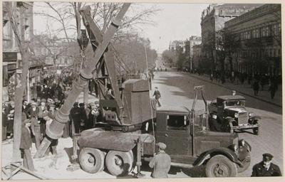 | Keywords: Одесса Чкалова троллейбус.JPG ЗиС-6 устанавливает т оллейбусную опо у в Одессе на улице Чкалова Де ибасовской По улице едет ГАЗ-АА номе УО 31-71 жу нал Родина 11-2008 ст 128 march-april 1941 author PD-old-70 Trolleybuses in Odessa Historical images of Odessa Deribasivska Street ZiS-6 GAZ-AA 1941 in Odessa |