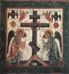 | Keywords: Икона Прославление-креста.jpg ru П ославление к еста на обо оте - Спас е укотво ный Вто ая половина XII века овго од 77 Х 71 ГТГ Инв 14245 П оисходит из Успенского собо а осковского К емля XII http //fotki yandex ru/users/anatoly02/view/467181 page 0 author PD-Art icons of Michael and Gabriel Uploaded with UploadWizard Icons of the True Cross |