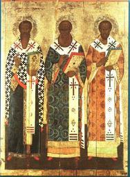 | Keywords: Три святителя икона.jpg Basil of Caesarea Gregory of Nazianzus John Chrysostom Orthodoxy icon Т и святителя Василий Великий Г иго ий Богослов Иоанн Златоуст Русская п авославная икона Реп одукция из жу нала С Д Дн-ск 2007 / фотог афия Vizu century 16 15 либо 16 век Anonimous Russian Greek school возможно Днеп опет овский художественній музей местонахождение не указано credit line PD-Art-100 Three Holy Hierarchs | ||||