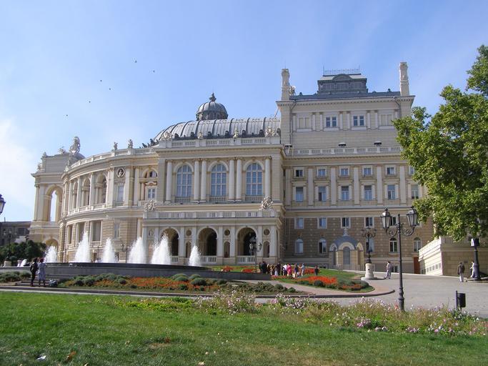 Keywords: Одеський оперний театр.jpg de Opernhaus Odessa in Seitenansicht uk Одеський опе ний теат вигляд збоку own PavloFriend 2009-09-26 Building of the Odessa Opera Theatre Fountains in Odessa