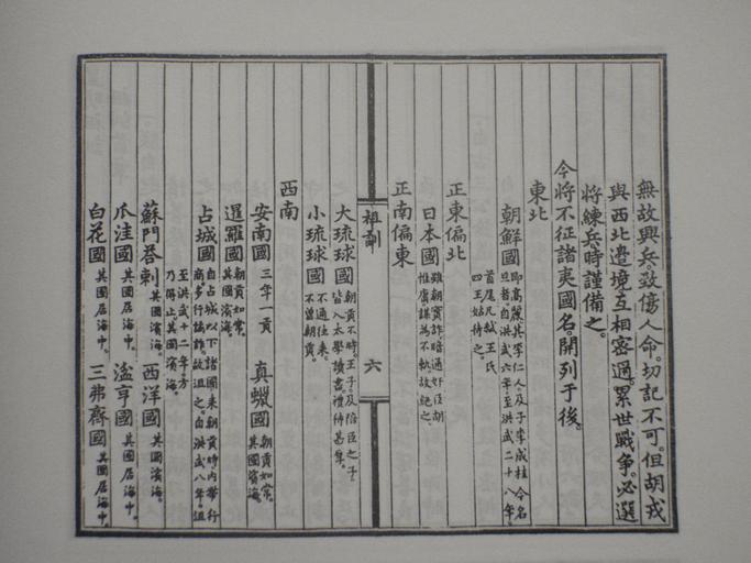 | Keywords: 皇明祖訓不征之國.JPG en A part of Record of the Ancestor's Instructions as known as Huang Ming Zhu Xun in Chinese written by Zhu Yuan Zhang and published in the late 14th century Ming Dynasty China 2012-10-28 20 46 53 Huang Ming Zhu Xun 皇明祖訓 published by the Ministry of Rites of Ming Dynasty in Hongwu era 1368-1398 Zhu Yuan Zhang 1328-1398 PD-Art Uploaded with UploadWizard Ming Dynasty |