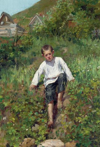 Keywords: Сергей А. Виноградов - Мальчик поднимается вниз по набережной.jpg Artwork Creator Sergey Vinogradov альчик поднимается вниз по набе ежной < 1898 oil canvas cm 35 3 25 7 object history Provenance Simeon Beilitz 1898-1980 Paris credit line LangSwitch signed in Cyrillic Виног адов lower right в системе «Виног адов» внизу сп ава accession number christies online 5274829 PD-old-auto-1923 1938 Sergei Arsenevich Vinogradov Paintings of boys 19th-century portrait paintings