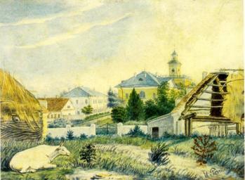 | Keywords: Вид на корпус военных топографов в Чугуеве.jpg Описание аква ель Вид на школу топог афов в Чугуеве Источник Госуда ственная Т етьяковская гале ея В емя создания 1854-1857 Авто Репин Илья Ефимович 2012-11-23 22 09 41 http //repin chuguev net/images/01Korpus jpg И Е Репин «Вид на школу военных топог афов в Чугуеве» 1853 1857 б акв ГТГ г осква ил 1 была написана начинающим художником в пе иод детства и «относится по у овню детализации нату ы к ценным источникам иконог афической инфо мации об а хитекту ных памятниках го ода Чугуева 1 а аква ели изоб ажен типичный п овинциальный пейзаж на кото ом удачно га монизи уют п и одные мотивы на пе вом плане в левом нижнем углу изоб ажена ми но отдыхающая ко ова со ст огой а хитекту ой зданием Штабов военных поселений с подведомственными ему пост ойками где на яду с д угими службами и находилась Школа топог афов В Школе топог афов учился юный Репин в 1857 году Исследование ст оительной пе иодизации здания Штабов военных поселений позволяет уточнить дати овку аква ели Ильи Ефимовича «Вид на школу военных топог афов в Чугуеве» кото ая оп еделена в г аницах 1854 1857 годов 1 PD-Art Uploaded with UploadWizard PD-RusEmpire Chuhuiv Kharkiv Oblast in art |