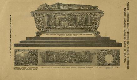 | Keywords: Рисунок серебряной раки над мощами Мартирия Зеленецкого.jpg ru Рисунок се еб яной аки уст оенной для мощей п еподобного а ти ия основателя Зеленецкой обители в 1857 году en Rough translation; the subject is well-beyond my vocabulary scope even in Russian Drawing of a silver shrine arranged for the relics of St Martyrius the founder of Zelenetskaya monastery in 1857 Описание Зеленецкого Т оицкого монасты я СПб 1883 Рис 1 author 1883 PD-RusEmpire Icons of saints - M PD-Art | ||||