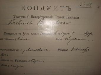 | Keywords: Титульный лист кондуита Всеволода Вишневского.jpg ru Титульный лист кондуита Всеволода Вишневского составленного в 1-ой Санкт-Пете бу гской гимназии в пе иод 1909 1912 гг 1909 1912 School's Museum collection 321 School St Petersburg The address of museum 191119 Russia Saint-Petersburg Socialisticheskaya St 7 / Pravdy St 11 phone +7 812 764-86-38 e-mail sch321 center-edu/spb/ru The First Saint-Petersburg Gymnasium now School 321 St Petersburg Russia PD-1923 PD-old-70-1923 Uploaded with UploadWizard School certificates The First Saint-Petersburg Gymnasium St Petersburg Russia Vsevolod Vishnevsky |